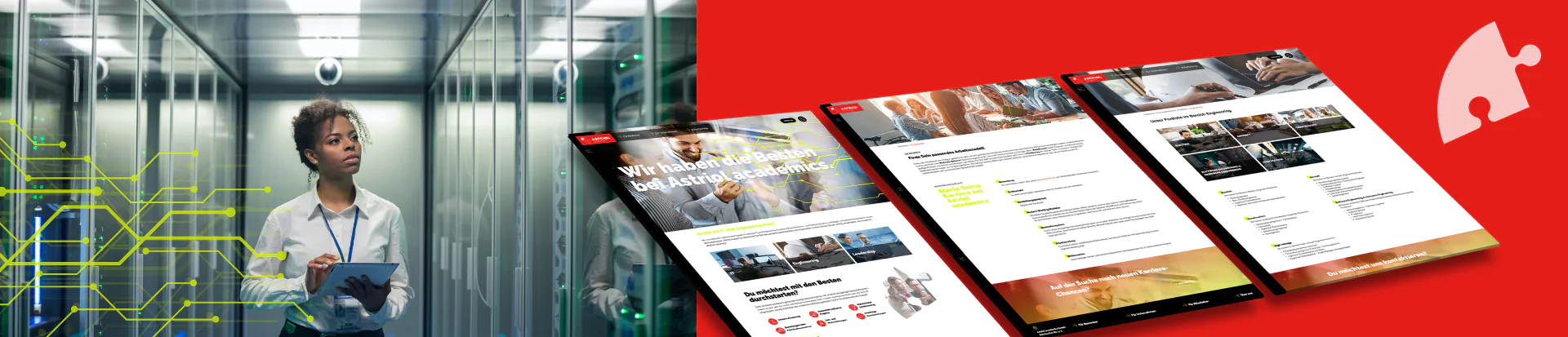 Die Konzeption des neuen Internetauftritts erfolgt Hand in Hand zwischen den Fachleuten von Astriol academics und den Spezialisten von brandcom. Für alle relevanten Zielgruppen wie Bewerber, Unternehmen und Mitarbeiter wurden jeweils individuelle Costumer Journeys definiert und entsprechende Landing Pages entwickelt unter Berücksichtigung von Content, Struktur und User Experience.