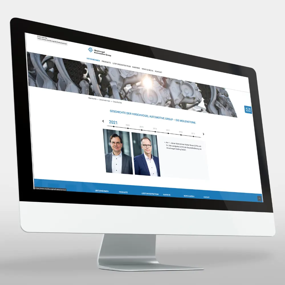 Im Rahmen des Kundenprojekts drehte sich alles um die Neuprogrammierung der Website mit dem CMS TYPO3. Ein besonderes Augenmerk wurde dabei auf die Realisierung eines durchdachten Rechte- und Nutzermanagements gelegt, da viele Redakteure Zugriff auf das Backend der Website benötigen. Um die Website nicht nur technisch state-of-the-art zu entwicklen, sondern auch die Usability der Website zu verbessern, kam im nächsten Schritt die Heatmap von Matamo zum Einsatz. An Hand dieser kann das Nutzerverhalten in Bezug auf Aufmerksamkeit, Engagements und Klicks gemessen sowie Optimierungsmaßnahmen abgleitet werden. Nach einer gelungenen Website-Optimierung werden wir auch in Zukunft die technische Betreuung der Website übernehmen und freuen uns auf die weitere Zusammenarbeit mit Hirschvogel.