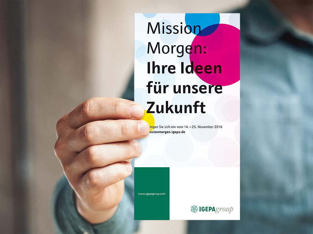 Wie muss sich der Großhandel für Morgen aufstellen? Welche Leistungen werden im immer stärker digitalisierten Geschäft noch in Zukunft relevant sein? Auf diese Fragen gilt es Antworten zu finden und die starke Marke IGEPA fit zu machen für die Anforderungen von morgen. Doch es geht nicht nur um die Marke, sondern auch darum, die Mitarbeiter aller IGEPA Gesellschaften und deren Standorten mitzunehmen. Unsere "Mission Morgen".