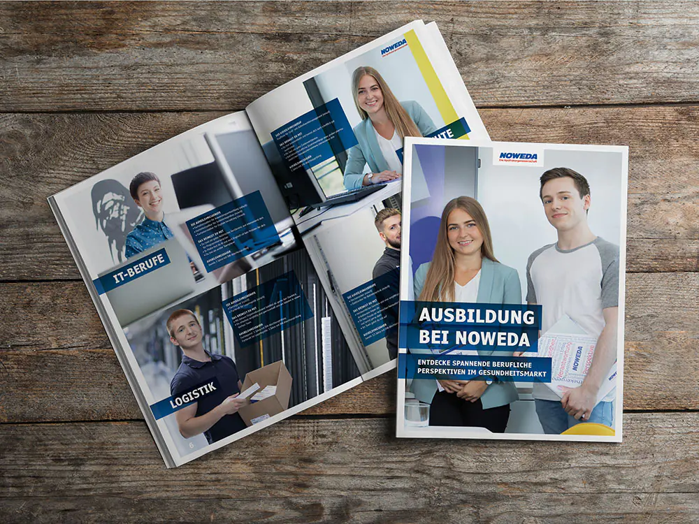 Auf Basis des Konzepts haben wir seit Start der Zusammenarbeit bereits viele unterschiedliche Medien auf den Weg gebracht: Die Karriereseite wurde konzeptionell und inhaltlich neu aufgestellt. Eine Azubi-Broschüre im modernisierten Corporate Design zeigt Schüler:innen nun, warum sich eine Ausbildung bei NOWEDA lohnt. Flyer bieten einen Überblick über standortspezifisiche Benefits. Social-Media-Anzeigen sorgen für neue Bewerber:innen. Und schon bald können sich Besucher:innen von Karriere- und Azubi-Messen an den neu konzipierten Messeständen informieren.
